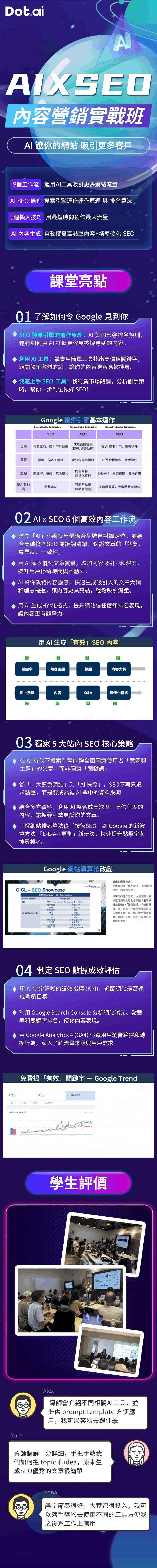 - 學會評估 SEO 成效指標,用數據持續提升網站表現。
