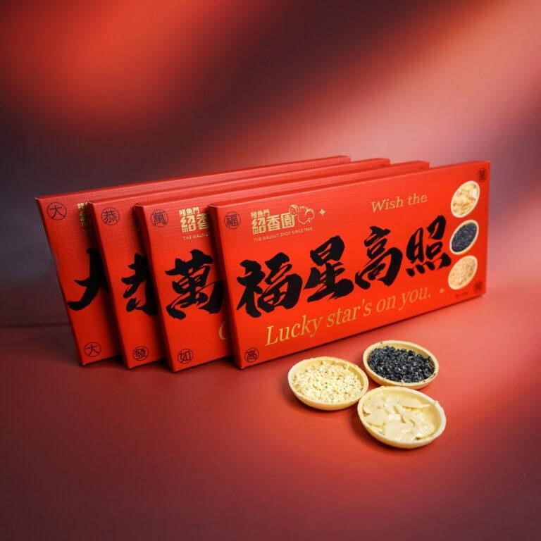 4款外盒,每盒三款口味:杏仁酥、黑芝麻酥、白芝麻酥濃郁果仁香,每口香、鬆、脆金黃酥脆的層疊滋味