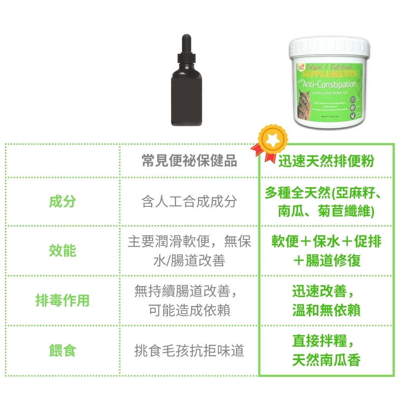 - 快速又溫和舒緩便祕:自然排便,無腹痛、不刺激,無依賴性!