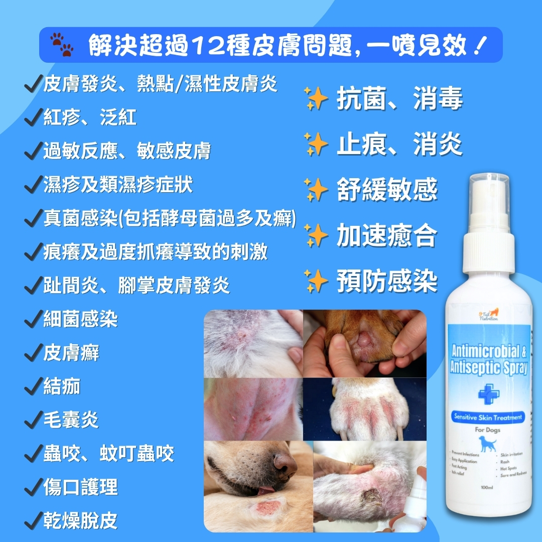 9 Tail Nutrition 狗用抗菌消炎皮膚噴霧 - 消毒、止痕、抗真菌100ml